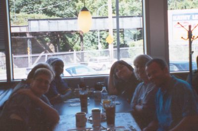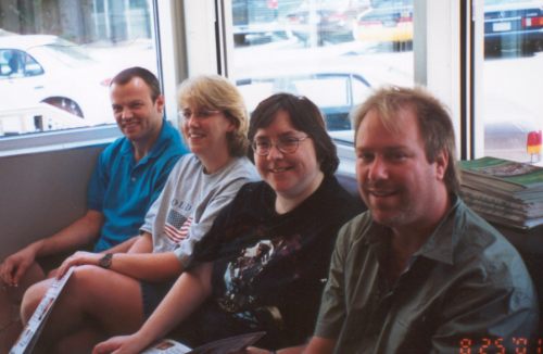 The next morning, SOME people were feeling a bit hung over - we went to a diner for breakfast before heading to New Jersey and the Cherry Hill Hilton. That's Lisa and Vince looking a bit worse the wear, Lisa DC in the shades, me in the black T shirt and Alan, Lisa TN's brother.