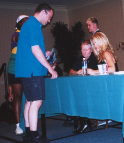 Vince gets his autograph from Vicky Pratt as Lisa DC lurks.