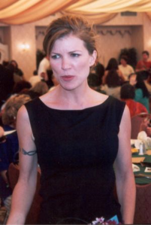 The first guest was Tsianina Joelson. This was only her second con, after Pasadena, and she was very sweet, although didn't have a lot of detail to give about her work on the show. She was asked about her fights with Renee in Path of Vengeance and working with Renee as a director and gave fairly brief "it was great, she was great" answers. She laughed when asked about why Varia didn't take off her blindfold in To Helicon and Back - her hands were chained in FRONT of her after all! She said that she thought the exact same thing, and that people would think she was an idiot. However, they had already done some of the other camera work so they had to do it that way. She also had a good story about her win in the Miss Fitness America (or something) a few years ago and how she never thought she would win it. She has just returned from filming in Europe where she got to see the pyramids which she enjoyed a lot. Her most painful story was from filming Path of Vengeance. She was doing a fight scenes, and there were large poles rather close behind her when she was throwing punches. She had to swing her arm around, and it hit this pole, dislocating her shoulder. The momentum was such that the shoulder popped back in, but she was in some pain! However, they did give her a few days off to recover..the things you DON'T see!