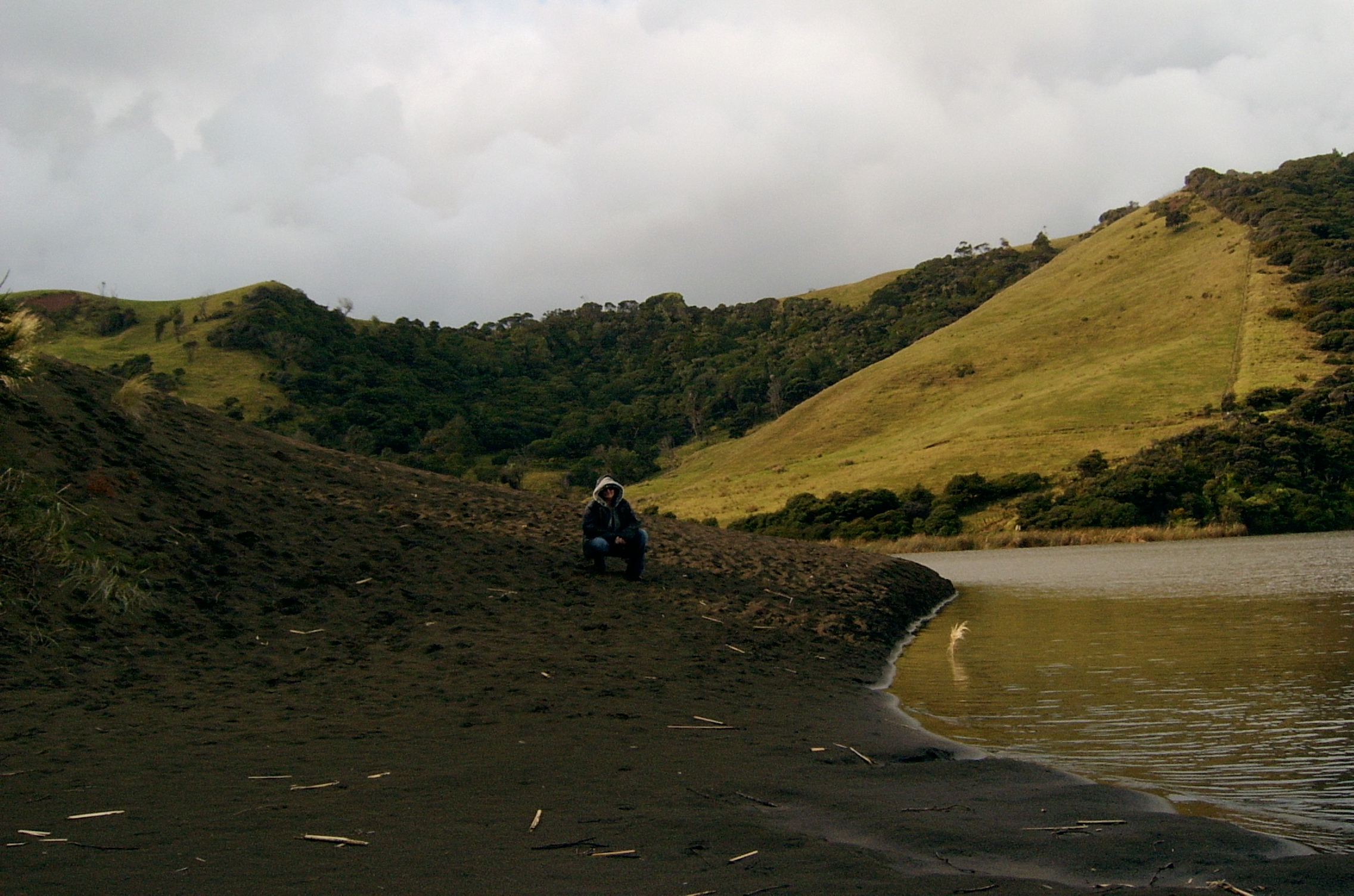 The area you want to go to is quite a way from Downtown Auckland, about 45km or so. You head out of the city heading north on the 16 and aim for Bethells Beach on the west coast. Take the Bethells Rd towards the beach. Your first stop is the river, the dunes and the lake - Lake Wainamu. About a mile or 2 from the beach on Bethells Rd, you cross a narrow white bridge and immediately on your left is a parking area and a path along the river straight out of the opening credits! The hike across the Motherhood/Seeds of Faith black sand dunes to the Fins Femmes and Gems lake takes a while but is very worthwhile. When I was there, there was still a dent from the little wooden jetty Gabrielle fell into the water from when admiring her reflection! The black sand is iron based so is VERY heavy and pretty tiring to walk on!
